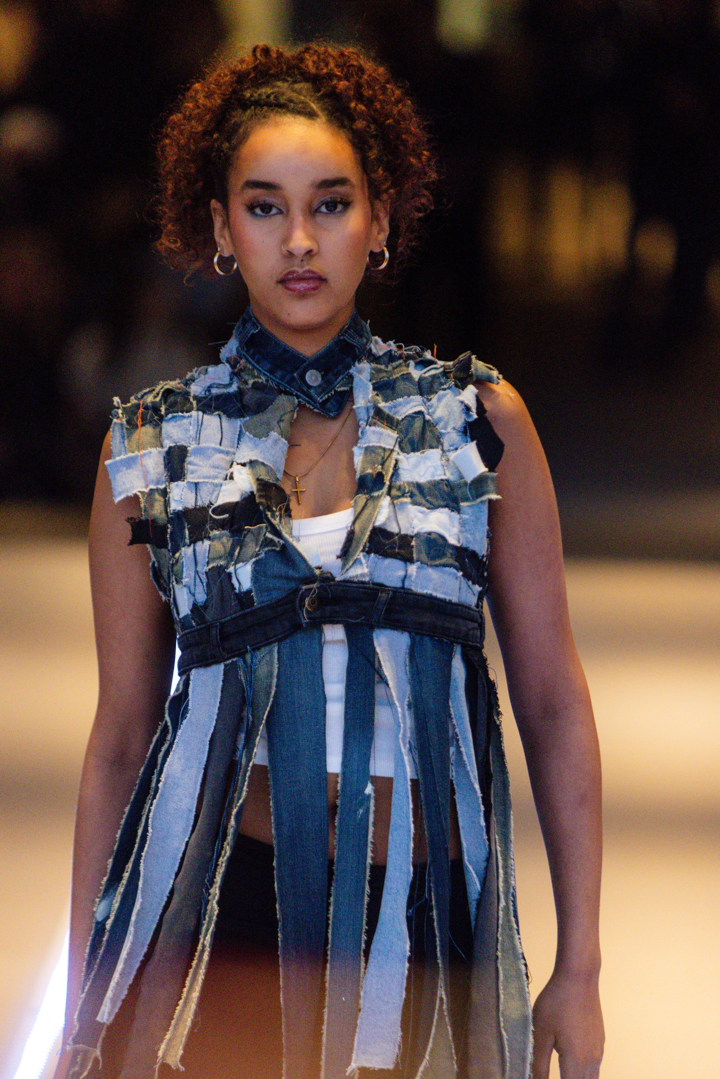 Created within a 6.5-hour live design challenge, this ready-to-wear look explores the tension between time constraint and intentional construction. Working with sustainable methods, the garment reflects a balance of immediacy and refinement—where quick decision-making becomes a design language of its own.